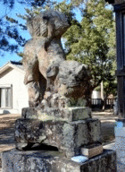 狛犬は境内に厄というか神様に良からぬ者・物・邪気などの侵入防御をしていることは容易に想像できる。私は最近知ったのだが、狛犬は神社に向かって右側が獅子(ライオン)であり、左が犬であるそうだ。お寺の門に建つ仁王像の口の阿吽のように、獅子の口が阿であり口を開き、犬の口が吽で口を閉じている。