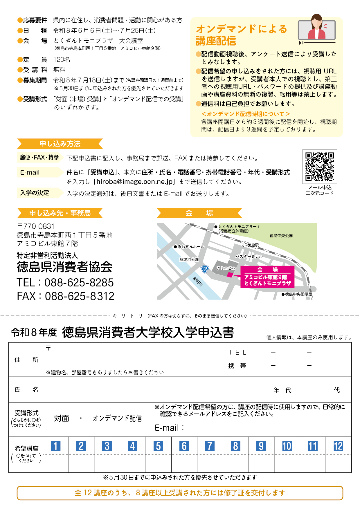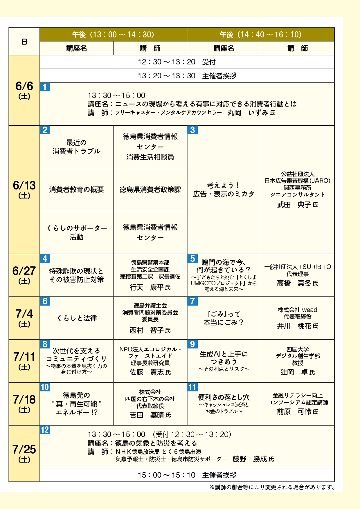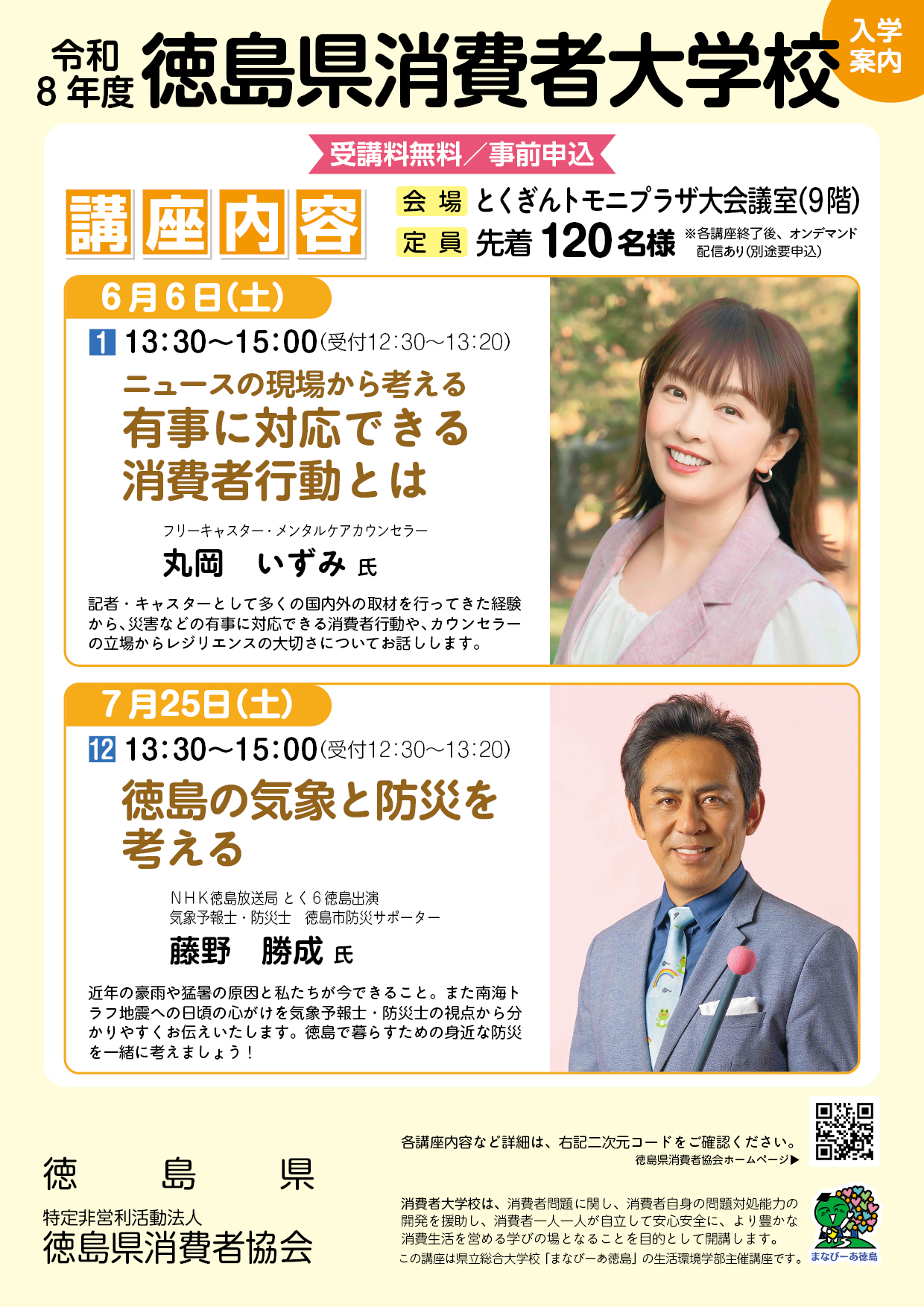 自立して安心安全に、より豊かな消費生活を営める学びの場となることを目的として開講します。